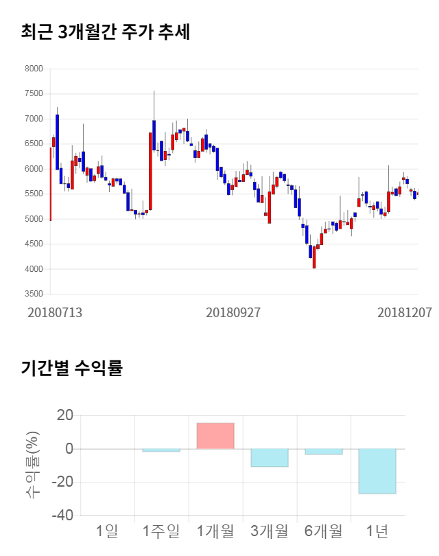 [그림 1] 최근 3개월 간 주가 추세 및 기간별 수익률