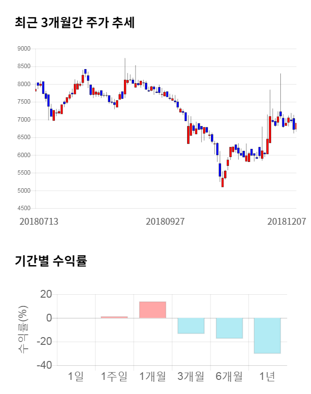 [그림 1] 최근 3개월 간 주가 추세 및 기간별 수익률