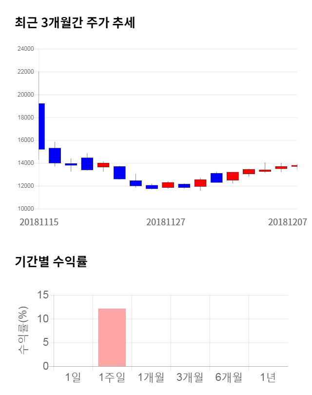 [그림 1] 최근 3개월 간 주가 추세 및 기간별 수익률