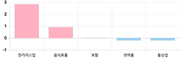 전기가스업(2.83%), 음식료품(0.93%), 보험(0.02%) 등은 상승세를 나타냈다.