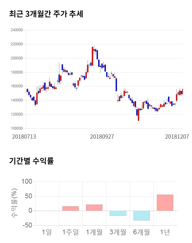 [그림 1] 최근 3개월 간 주가 추세 및 기간별 수익률