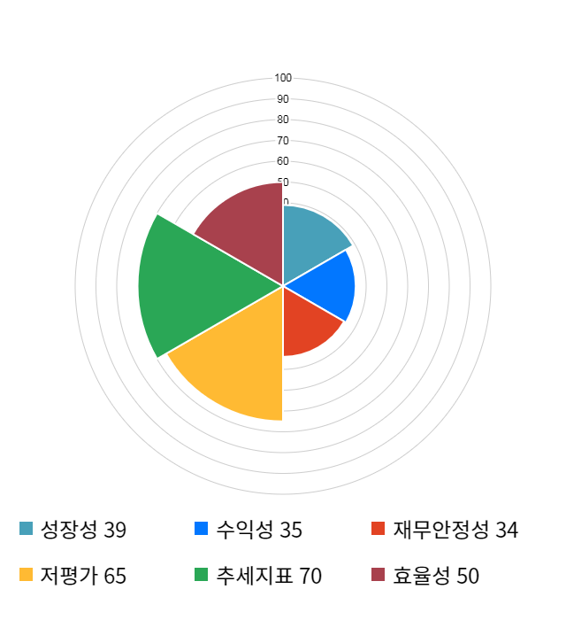 AI 인공지능 종목 분석 시스템을 이용해 성장성, 수익성, 효율성, 안전성, 저평가성, 추세 등 주가 수익률에 영향을 줄 수 있는 6가지 핵심 투자 지표를 점수화하여 종목의 투자 매력도를 계산해보았다.