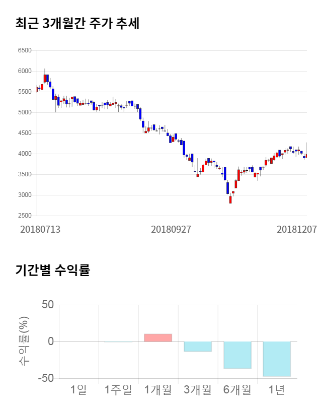 [그림 1] 최근 3개월 간 주가 추세 및 기간별 수익률