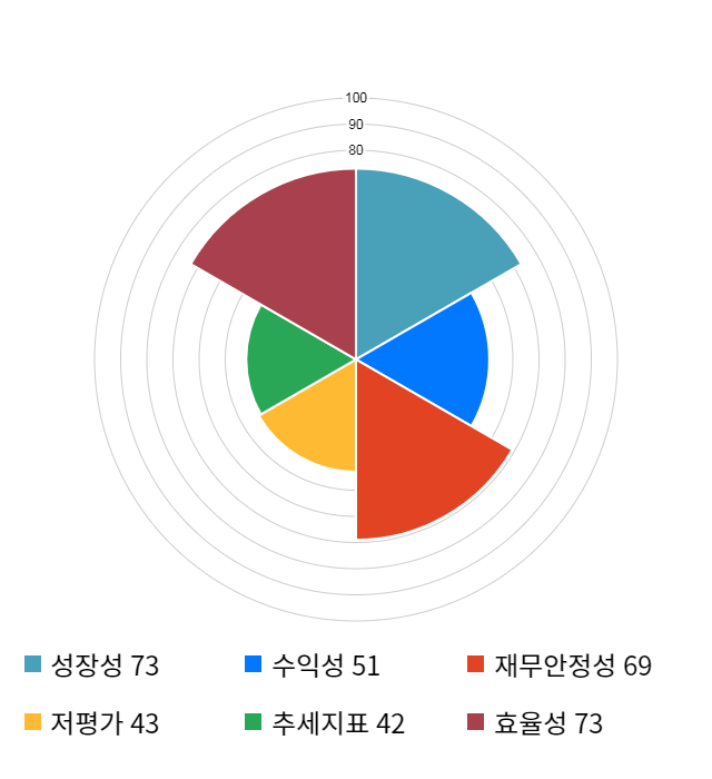 성장성 점수는 기업의 실적이 전년 동기 대비 얼마나 증가했는지를 나타낸 지표로 기업의 이익 성장 추세를 나타낸다.