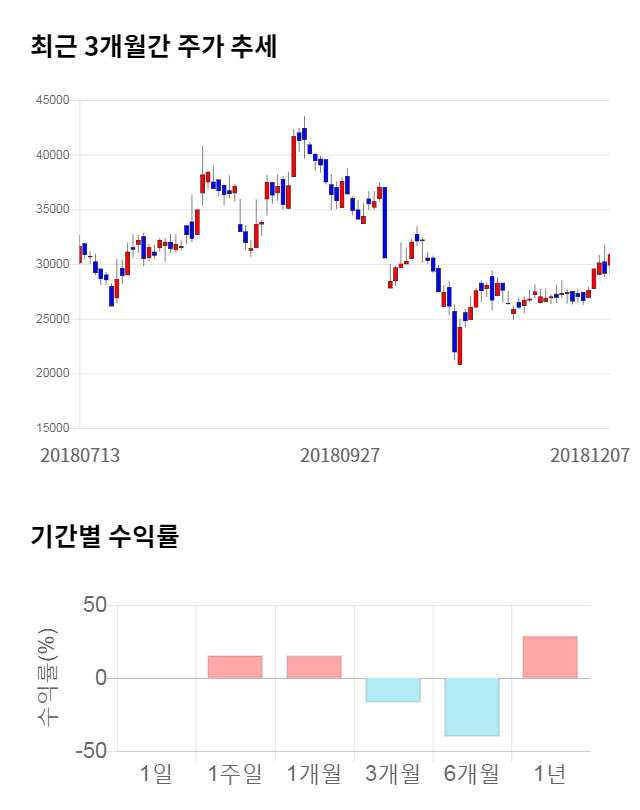 [그림 1] 최근 3개월 간 주가 추세 및 기간별 수익률
