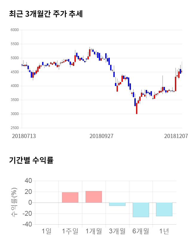 [그림 1] 최근 3개월 간 주가 추세 및 기간별 수익률