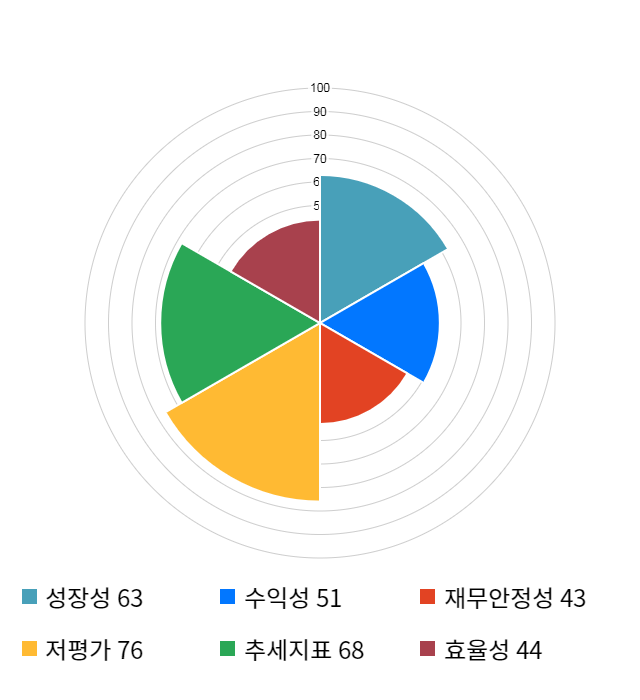 AI 인공지능 종목 분석 시스템을 이용해 성장성, 수익성, 효율성, 안전성, 저평가성, 추세 등 주가 수익률에 영향을 줄 수 있는 6가지 핵심 투자 지표를 점수화하여 종목의 투자 매력도를 계산해보았다.