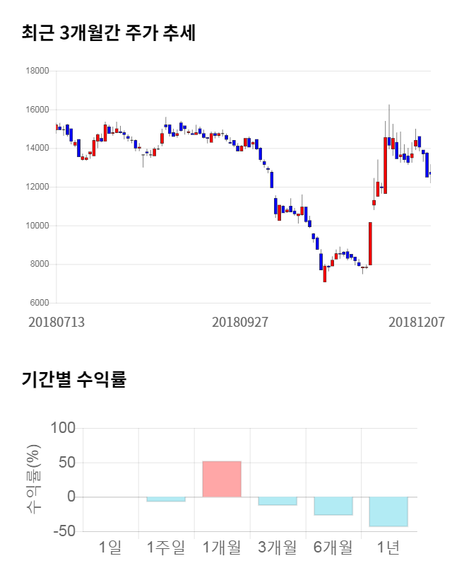 [그림 1] 최근 3개월 간 주가 추세 및 기간별 수익률
