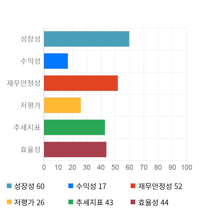 성장성 점수는 기업의 실적이 전년 동기 대비 얼마나 증가했는지를 나타낸 지표로 기업의 이익 성장 추세를 나타낸다.