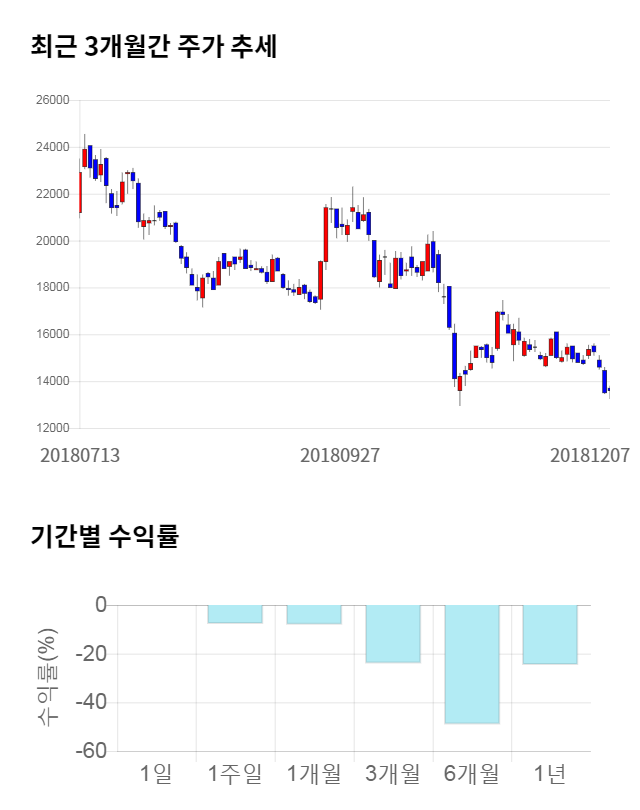 [그림 1] 최근 3개월 간 주가 추세 및 기간별 수익률