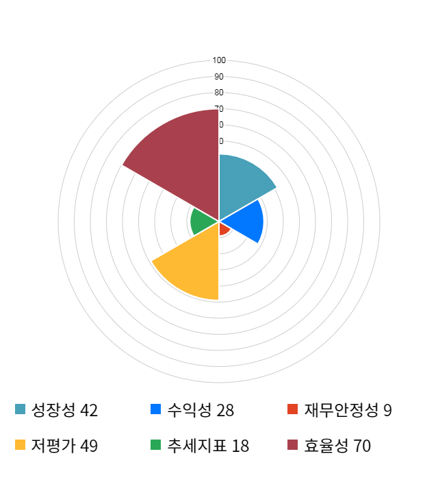 AI 인공지능 종목 분석 시스템을 이용해 성장성, 수익성, 효율성, 안전성, 저평가성, 추세 등 주가 수익률에 영향을 줄 수 있는 6가지 핵심 투자 지표를 점수화하여 종목의 투자 매력도를 계산해보았다.