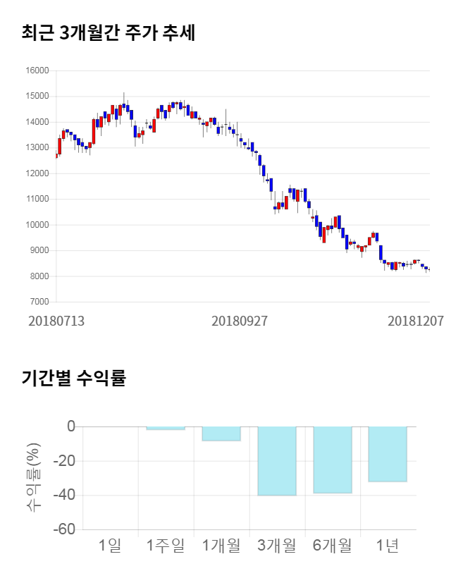 [그림 1] 최근 3개월 간 주가 추세 및 기간별 수익률