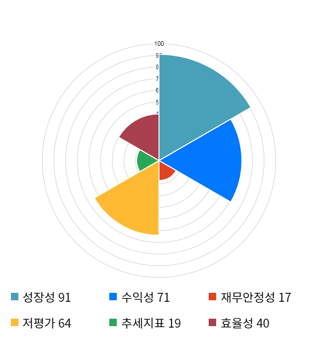 성장성 점수는 기업의 실적이 전년 동기 대비 얼마나 증가했는지를 나타낸 지표로 기업의 이익 성장 추세를 나타낸다.