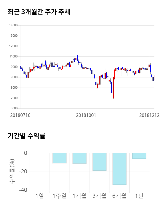 [그림 1] 최근 3개월 간 주가 추세 및 기간별 수익률