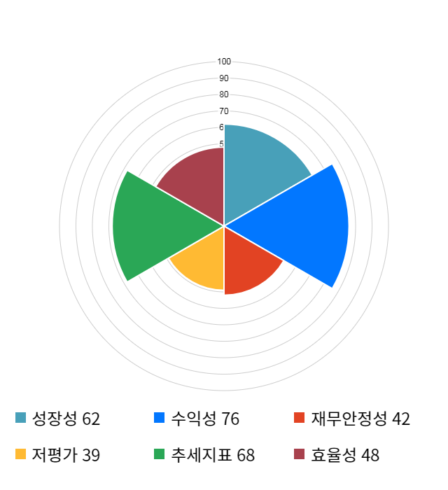 AI 인공지능 종목 분석 시스템을 이용해 성장성, 수익성, 효율성, 안전성, 저평가성, 추세 등 주가 수익률에 영향을 줄 수 있는 6가지 핵심 투자 지표를 점수화하여 종목의 투자 매력도를 계산해보았다.