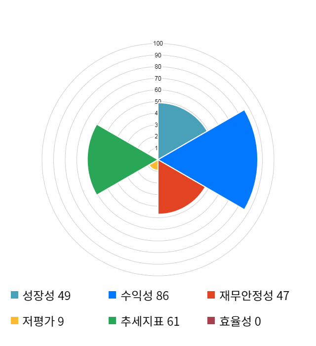 AI 인공지능 종목 분석 시스템을 이용해 성장성, 수익성, 효율성, 안전성, 저평가성, 추세 등 주가 수익률에 영향을 줄 수 있는 6가지 핵심 투자 지표를 점수화하여 종목의 투자 매력도를 계산해보았다.
