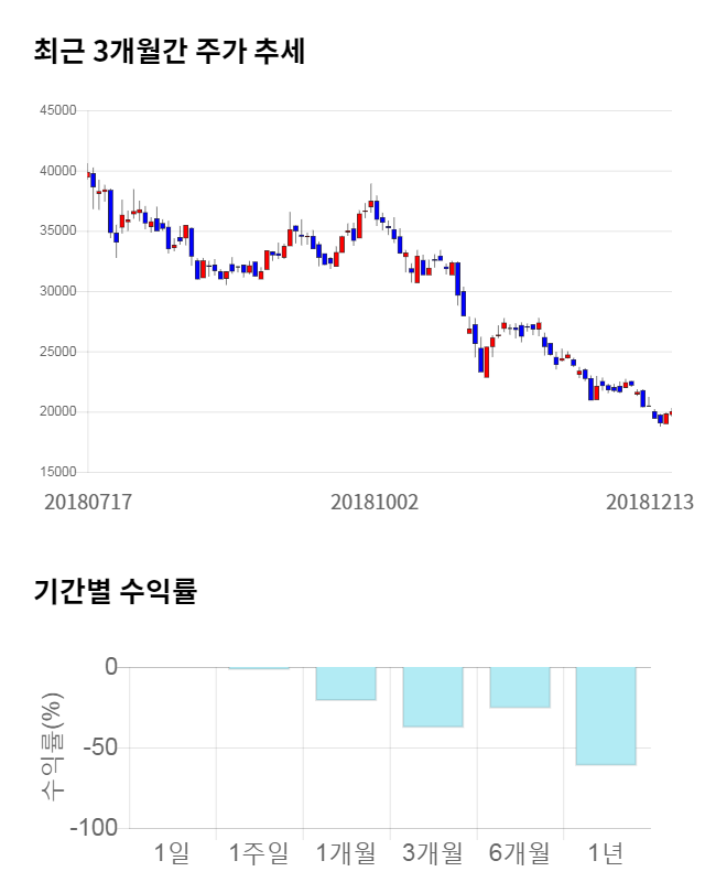 [그림 1] 최근 3개월 간 주가 추세 및 기간별 수익률
