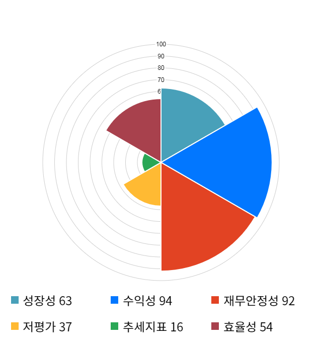 AI 인공지능 종목 분석 시스템을 이용해 성장성, 수익성, 효율성, 안전성, 저평가성, 추세 등 주가 수익률에 영향을 줄 수 있는 6가지 핵심 투자 지표를 점수화하여 종목의 투자 매력도를 계산해보았다.