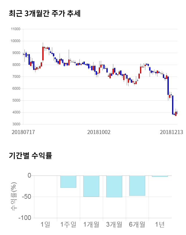 [그림 1] 최근 3개월 간 주가 추세 및 기간별 수익률