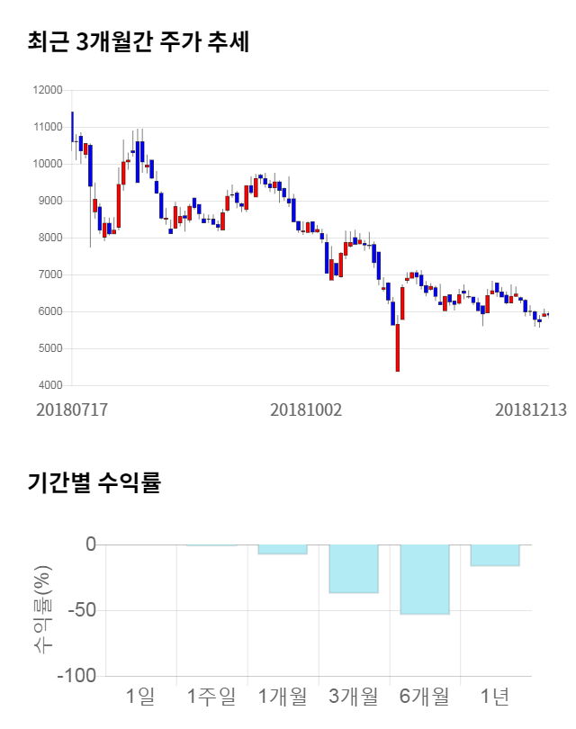 [그림 1] 최근 3개월 간 주가 추세 및 기간별 수익률