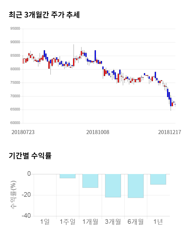 [그림 1] 최근 3개월 간 주가 추세 및 기간별 수익률