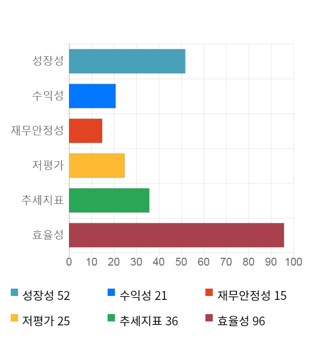 AI 인공지능 종목 분석 시스템을 이용해 성장성, 수익성, 효율성, 안전성, 저평가성, 추세 등 주가 수익률에 영향을 줄 수 있는 6가지 핵심 투자 지표를 점수화하여 종목의 투자 매력도를 계산해보았다.