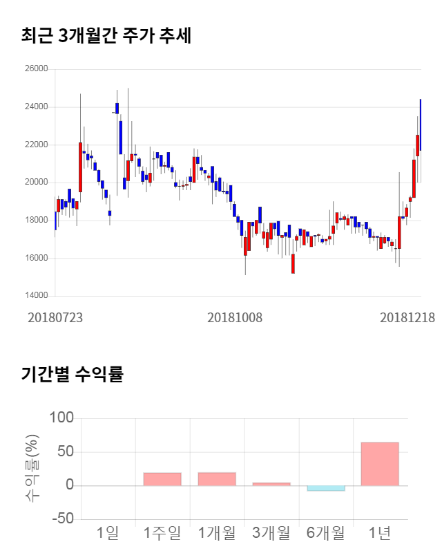 [그림 1] 최근 3개월 간 주가 추세 및 기간별 수익률