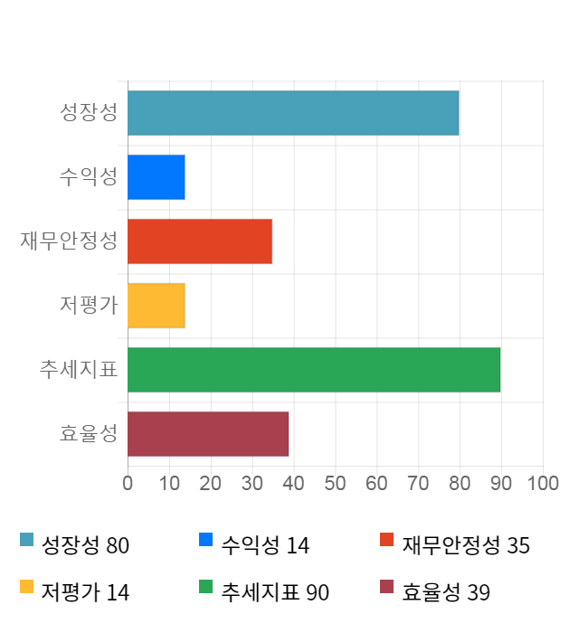 (위의 AI인공지능 점수는 재무 데이터를 기반으로 전체 상장 종목과 비교/분석하여 도출한 점수로 높은 점수가 반드시 높은 수익률을 보장하지 않습니다. 위의 자료는 당사의 추천 종목이 아니며, 투자 시 참고용으로 제시해드리는 것입니다. 핵심투자지표를 결합해 종목의 투자매력도를 종합 계산한 "인공지능 투자점수"는 "거장들의 투자공식" 앱에서 확인하실 수 있습니다.)
