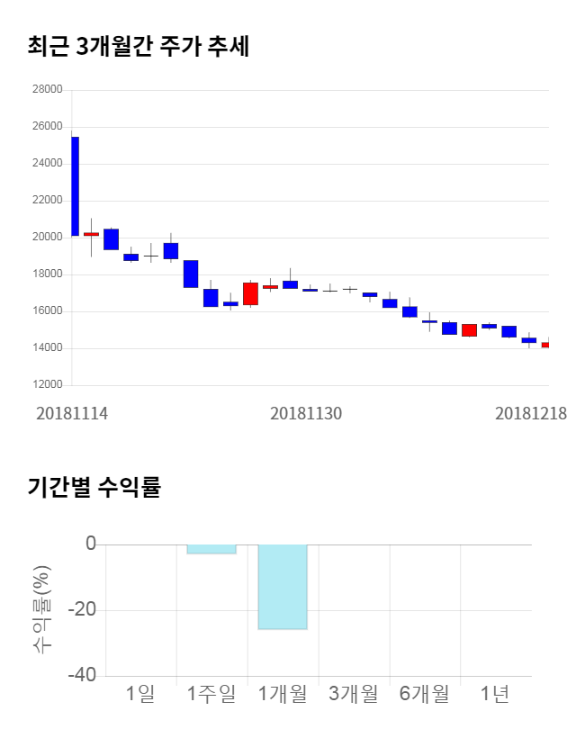 [그림 1] 최근 3개월 간 주가 추세 및 기간별 수익률