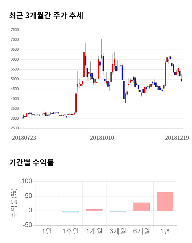 [그림 1] 최근 3개월 간 주가 추세 및 기간별 수익률