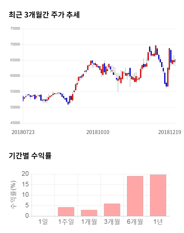 주가 모멘텀은 평범한 수준이었다. 최근 1개월 수익률이 3%, 3개월 수익률은 6.01%, 6개월 수익률은 19.16%를 기록했다.