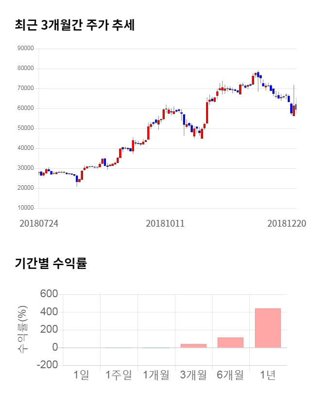 [그림 1] 최근 3개월 간 주가 추세 및 기간별 수익률