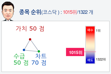 알파고가 가치, 수급, 차트로 평가한 텔콘RF제약종목의 현재 종합순위는 코스닥 1322개 종목 중 1015위로, 알파고는 텔콘RF제약기업의 수급을 높게 평가 분석하고 있다.