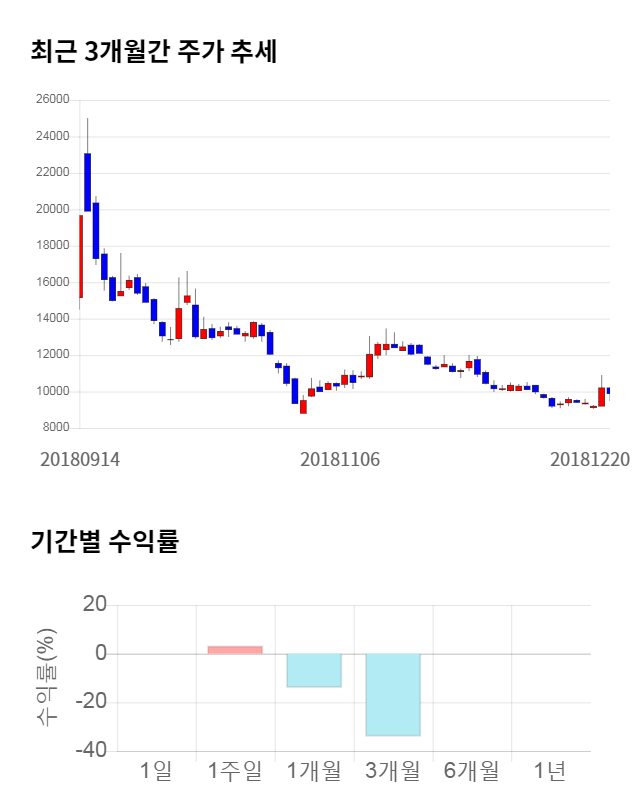 [그림 1] 최근 3개월 간 주가 추세 및 기간별 수익률