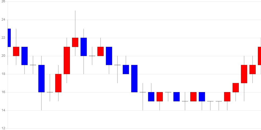 최근 1개월 고점은 25원이었으며, 현재 가격은 고점 대비 80% 수준이다.