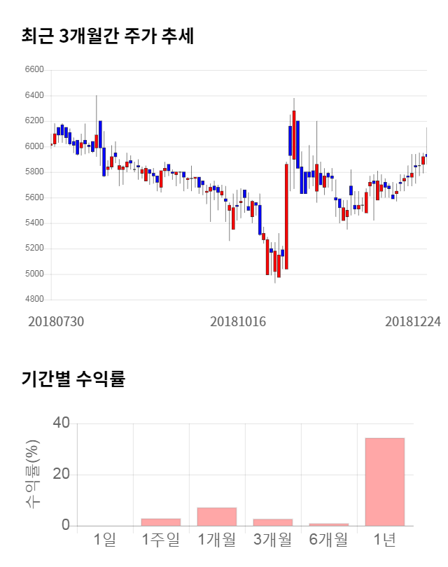 [그림 1] 최근 3개월 간 주가 추세 및 기간별 수익률