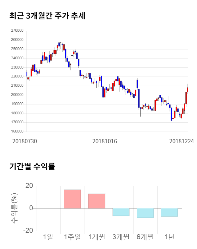 [그림 1] 최근 3개월 간 주가 추세 및 기간별 수익률