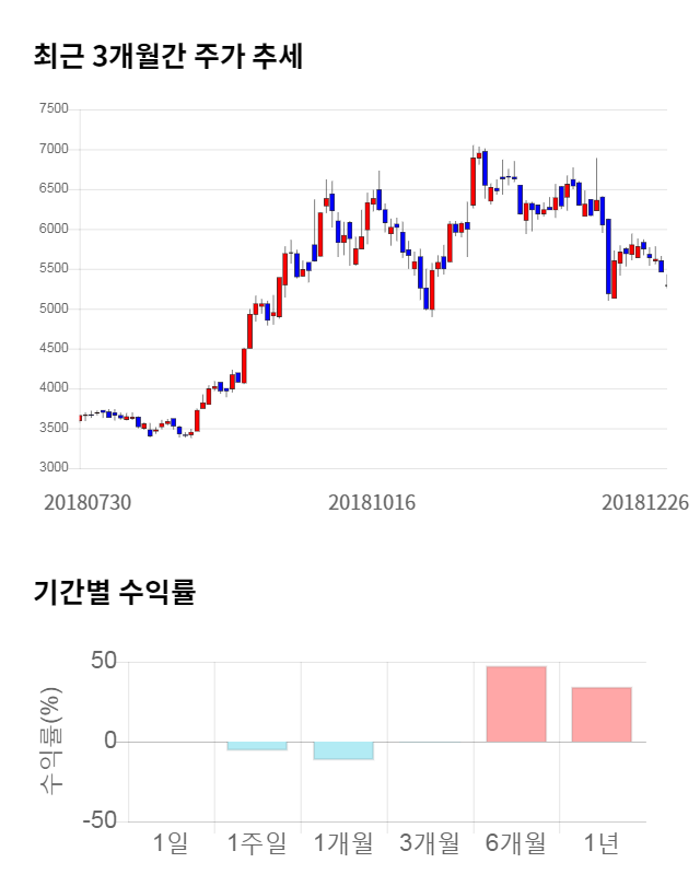 [그림 1] 최근 3개월 간 주가 추세 및 기간별 수익률