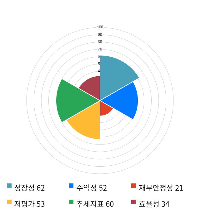 성장성 점수는 기업의 실적이 전년 동기 대비 얼마나 증가했는지를 나타낸 지표로 기업의 이익 성장 추세를 나타낸다.