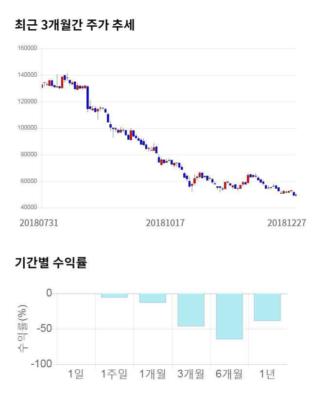 [그림 1] 최근 3개월 간 주가 추세 및 기간별 수익률