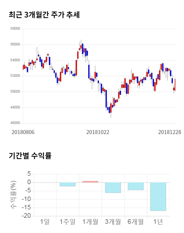 [그림 1] 최근 3개월 간 주가 추세 및 기간별 수익률