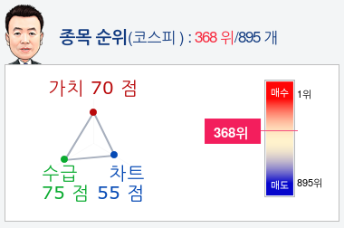 알파고가 가치, 수급, 차트로 평가한 카카오종목의 현재 종합순위는 코스피 895개 종목 중 362위로, 알파고는 카카오기업의 가치와 수급을 높게 평가 분석하고 있다.