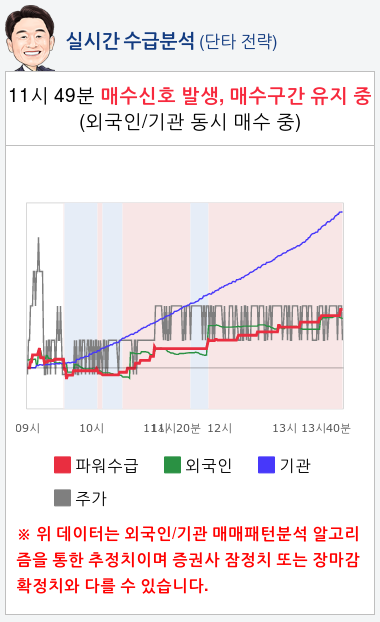 알파고가 분석한 카카오 종목의 외국인·기관 당일 실시간 수급은 현재 외국인은 매수하고 있고 기관은 매수하고 있으며, 종합 수급분석 평가지표인 파워수급은 09시 35분 부터 현재까지 매도 에너지가 더 높은 것으로 분석하고 있다.