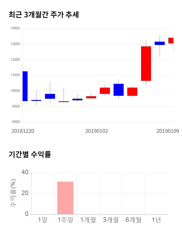 [그림 1] 최근 3개월 간 주가 추세 및 기간별 수익률