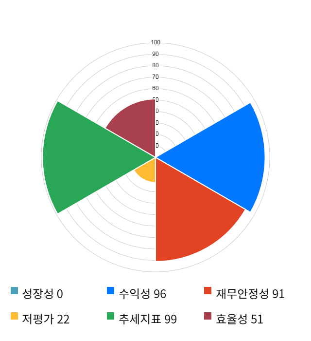 AI 인공지능 종목 분석 시스템을 이용해 성장성, 수익성, 효율성, 안전성, 저평가성, 추세 등 주가 수익률에 영향을 줄 수 있는 6가지 핵심 투자 지표를 점수화하여 종목의 투자 매력도를 계산해보았다.