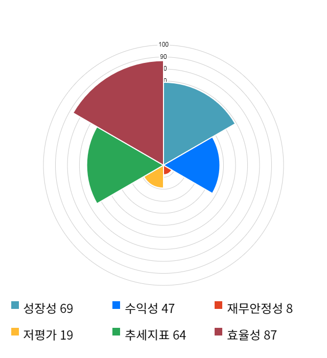 AI 인공지능 종목 분석 시스템을 이용해 성장성, 수익성, 효율성, 안전성, 저평가성, 추세 등 주가 수익률에 영향을 줄 수 있는 6가지 핵심 투자 지표를 점수화하여 종목의 투자 매력도를 계산해보았다.