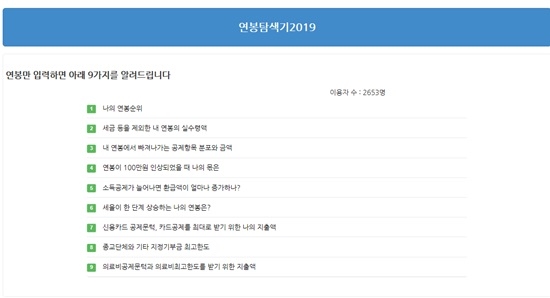 2019 연봉탐색기 (사진=한국납세자연맹)