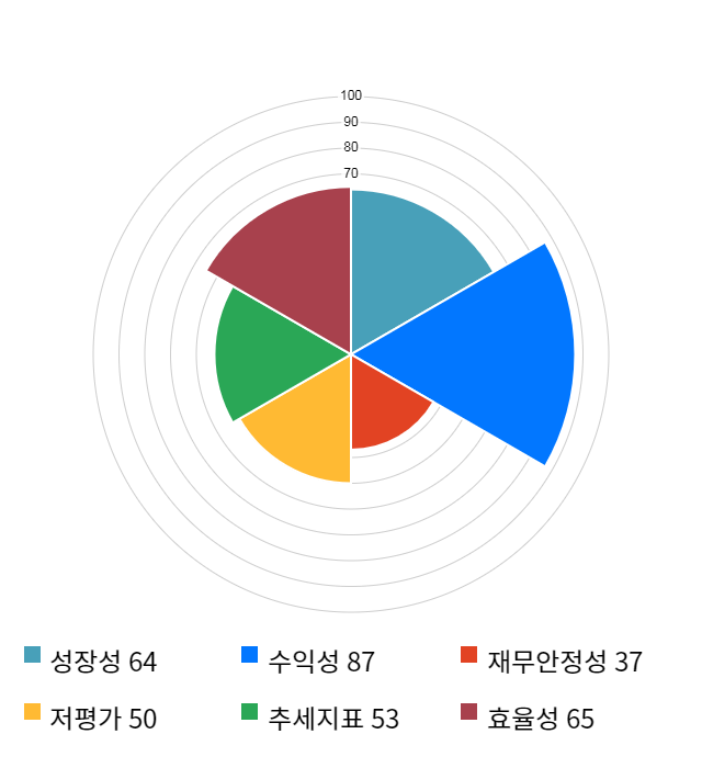 AI 인공지능 종목 분석 시스템을 이용해 성장성, 수익성, 효율성, 안전성, 저평가성, 추세 등 주가 수익률에 영향을 줄 수 있는 6가지 핵심 투자 지표를 점수화하여 종목의 투자 매력도를 계산해보았다.