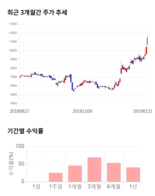 [그림 1] 최근 3개월 간 주가 추세 및 기간별 수익률