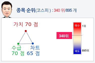 (위의 종목알파고 분석은 기업의 가치, 차트, 재무, 외인/기관 수급 등 과거 데이터를 분석하여 향후 주가의 방향을 예상 하였으며, 높은 수익률을 보장하지는 않습니다. 위의 자료는 투자 참고용으로 제시해 드리는 것이며, `종목알파고 유망종목 Top5`는 주식창앱에서 확인하실 수 있습니다.)